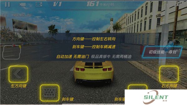 4. 比赛开始后,你可以通过屏幕上的方向键与刹车键掌控赛车行驶。